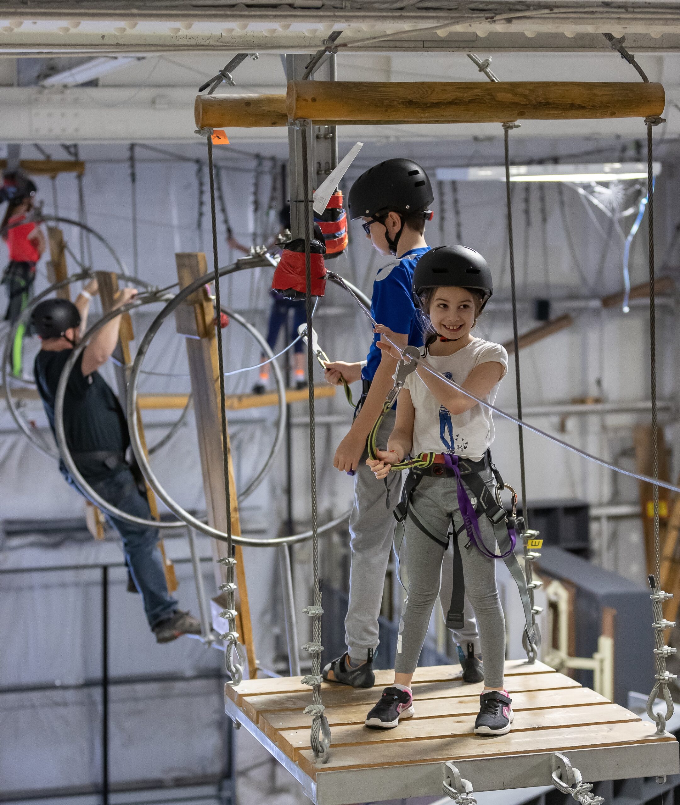 Venez en famille ou entre ami·e·s vous amuser dans notre parcours aérien nouvellement configuré! Une série de passages avec des défis suspendus près du plafond font partie de notre Acro-Parc. Faites-le plein d’émotions et venez vous surpasser!